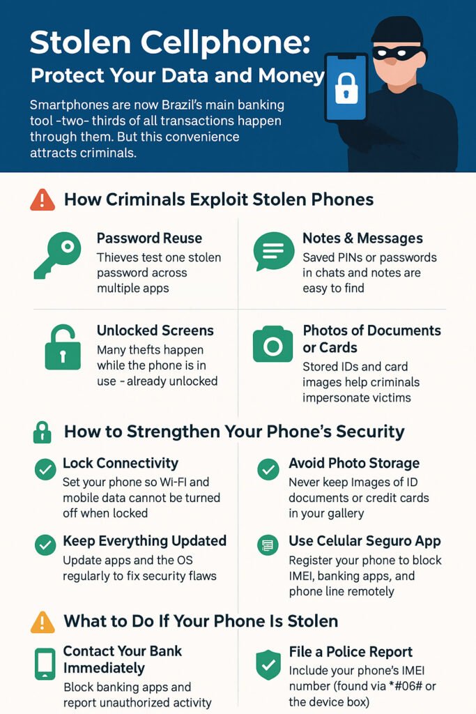 Smartphones have become the main tool for financial transactions in Brazil. According to the Brazilian Federation of Banks (Febraban), mobile devices account for two-thirds of all banking operations in the country. This convenience also attracts criminals. The number of cell phone thefts and robberies followed by banking fraud has grown significantly. In just a few minutes, criminals can steal not only your device but also your personal and financial information.