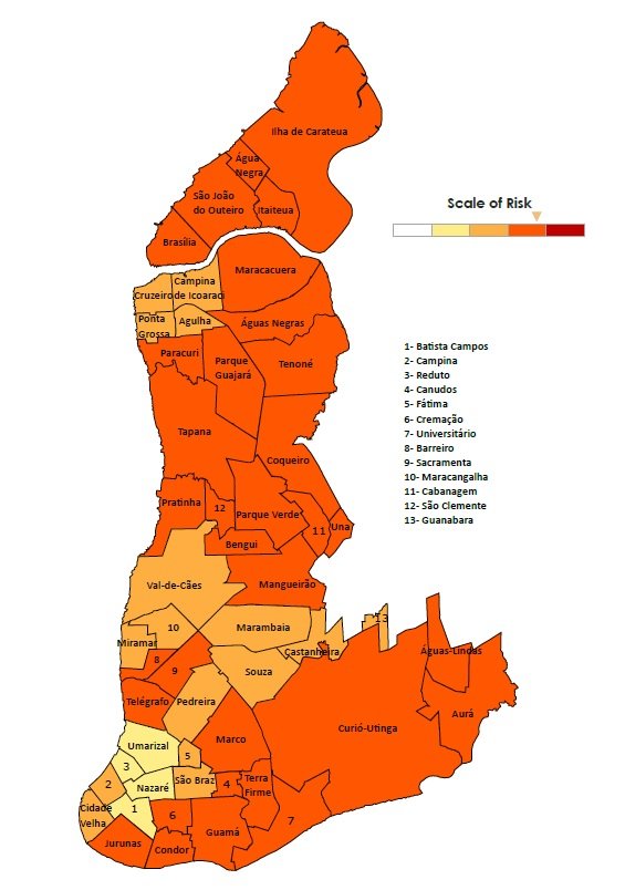 - Some of the most risky neighborhoods are: Jurunas, Condor, Guamá, Terra Firme, Res. Liberdade 2, Curió-Utinga, Barreiro, Sacramenta, Pratinha, Cabanagem, Benguí, Tapanã, Paracuri, Parque Guajará, Tocantins, Quarenta Horas, Tenoné, Icuí-Guajará, Cidade Nova, Curuçambá, Águas Lindas.